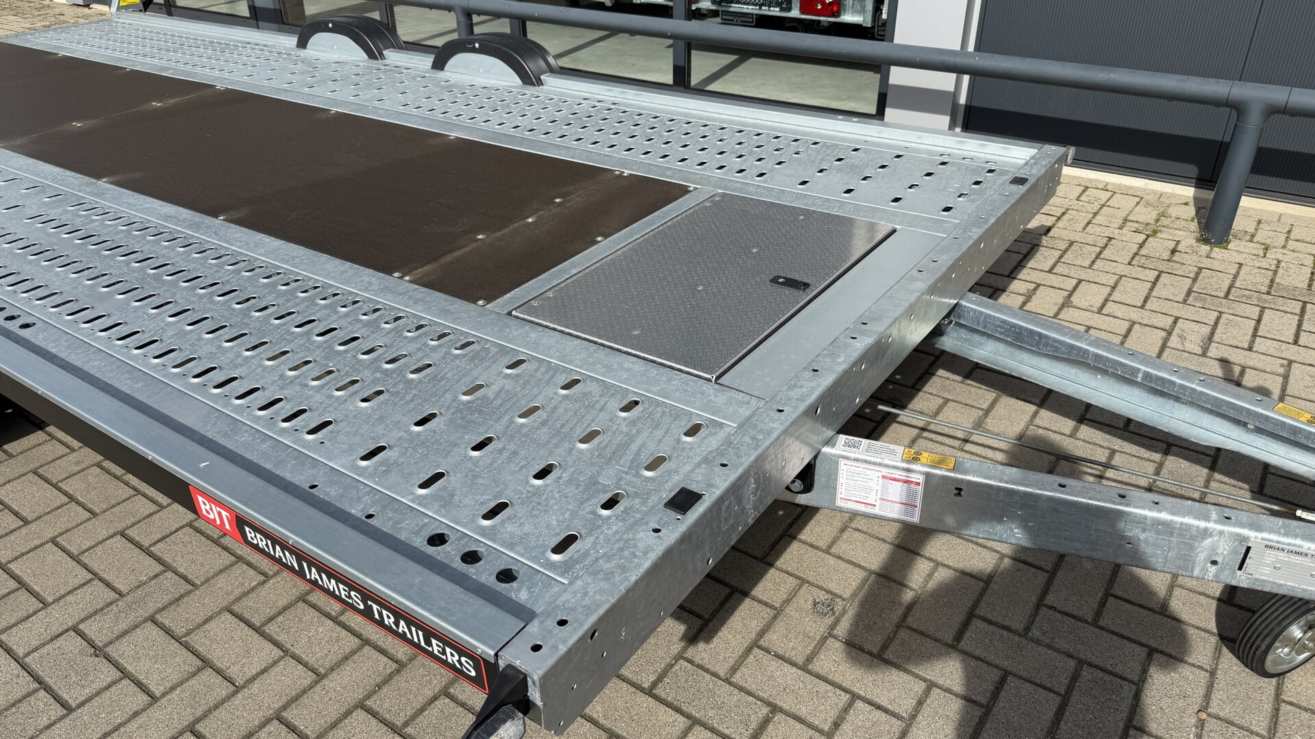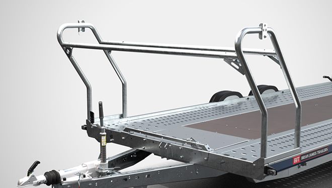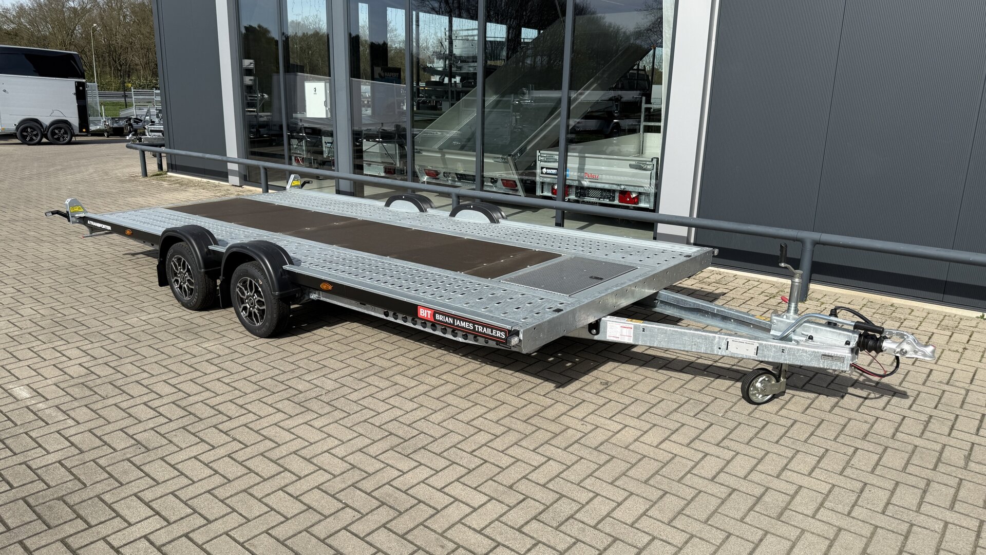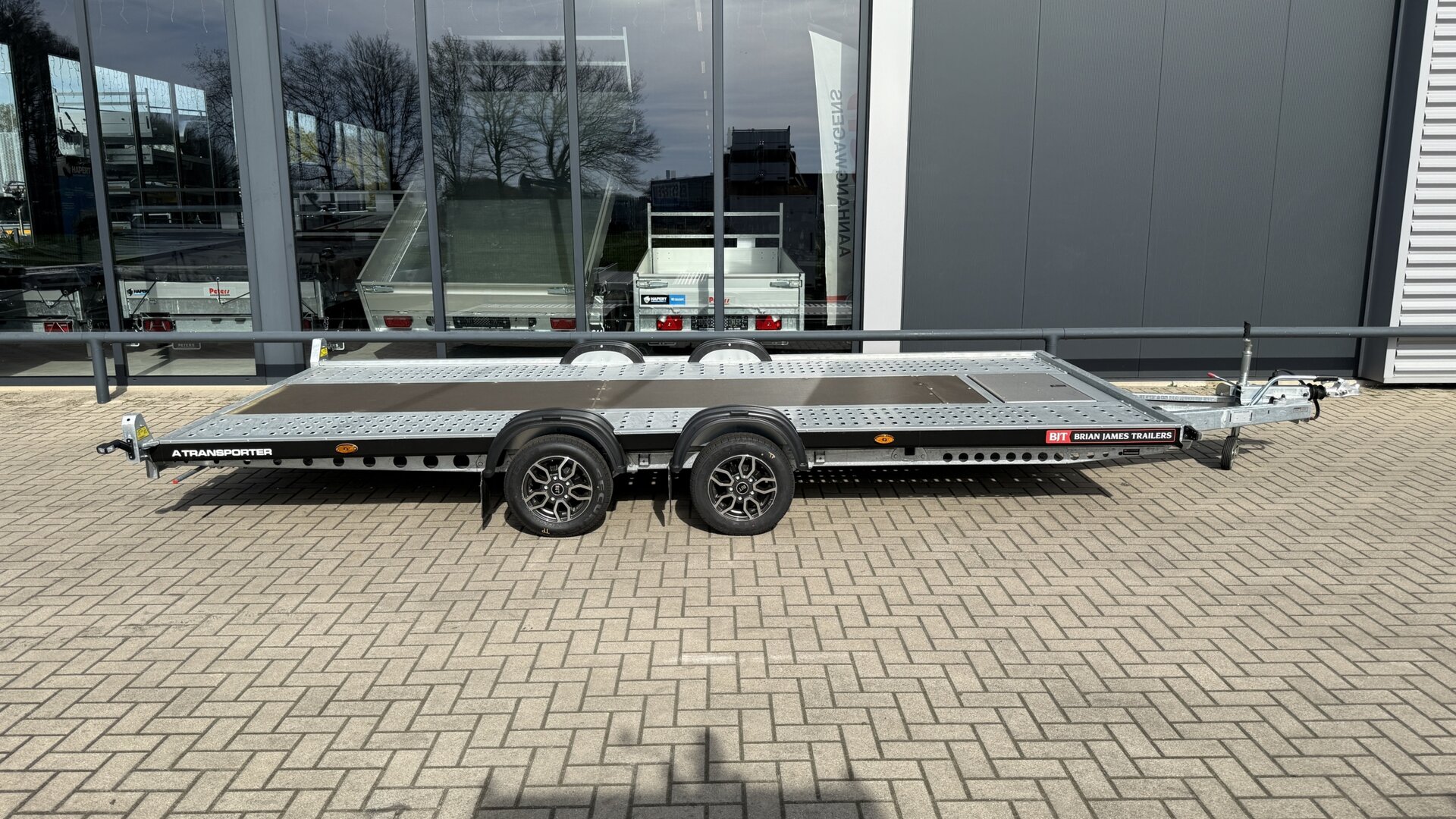 De Brian James A Transporter is een hoogwaardige open autotransporter die speciaal is ontwikkeld voor professioneel gebruik. Deze robuuste dubbelassige trailer combineert een laag eigen gewicht met een hoge laadcapaciteit en biedt maximale betrouwbaarheid bij het vervoeren van voertuigen.