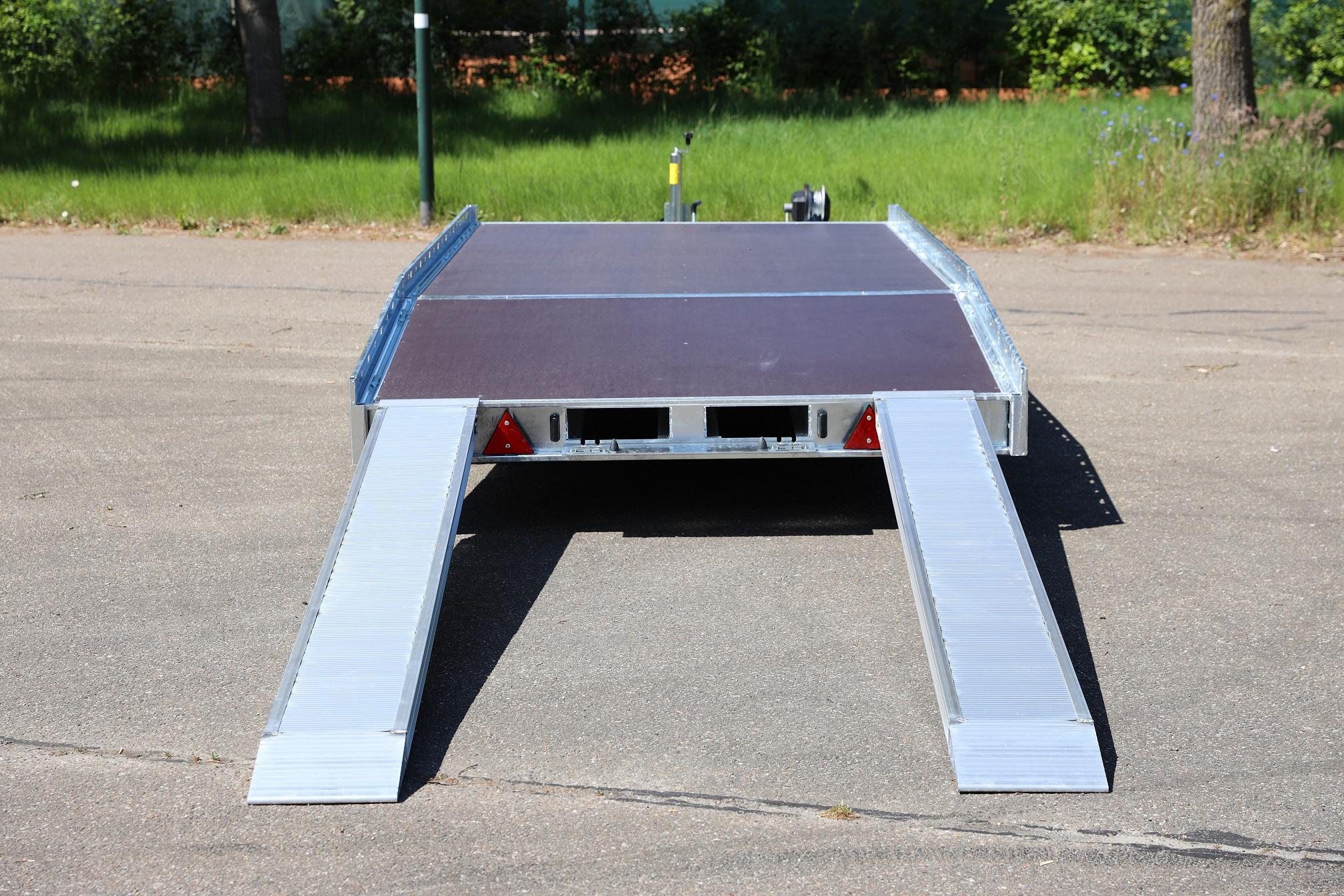 De Indigo HF is eenvoudig en praktisch in gebruik, zodat uw lading veilig vervoerd kan worden. Dankzij de afgeschuinde achterzijde met een oprijhoek van slechts 11 graden en de twee lange aluminium oprijbalken (250 cm lang) is het gemakkelijk om uw auto veilig op deze transporter te rijden. Bovendien is de Indigo H rijk uitgerust met en een lier met liersteun aan de voorzijde.