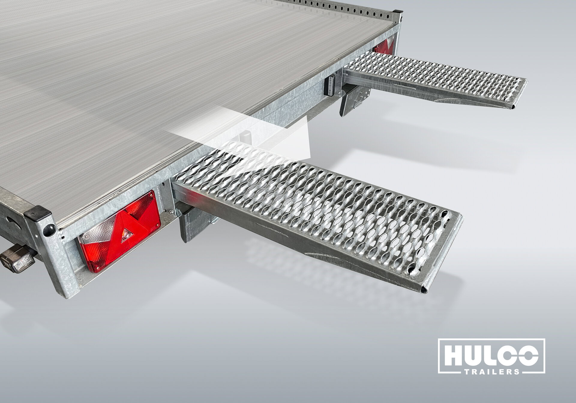 De Carax is een multitransporter ontworpen voor professionals die ook grotere voertuigen zoals bestelbussen en SUV’s willen vervoeren. Het robuuste chassis zorgt voor uitstekende ondersteuning van de aluminium laadvloer, terwijl de stalen rijplaten netjes onder de vloer zijn opgeborgen. Dankzij de unieke knik aan de achterzijde van de laadvloer kunnen ook langere voertuigen gemakkelijk op- en afrijden, en wielstops en spanbanden zijn eenvoudig te bevestigen in de daarvoor gemaakte uitsparingen.