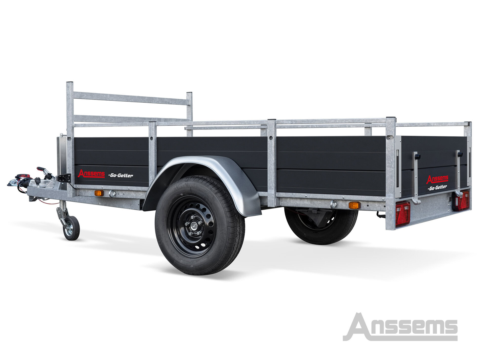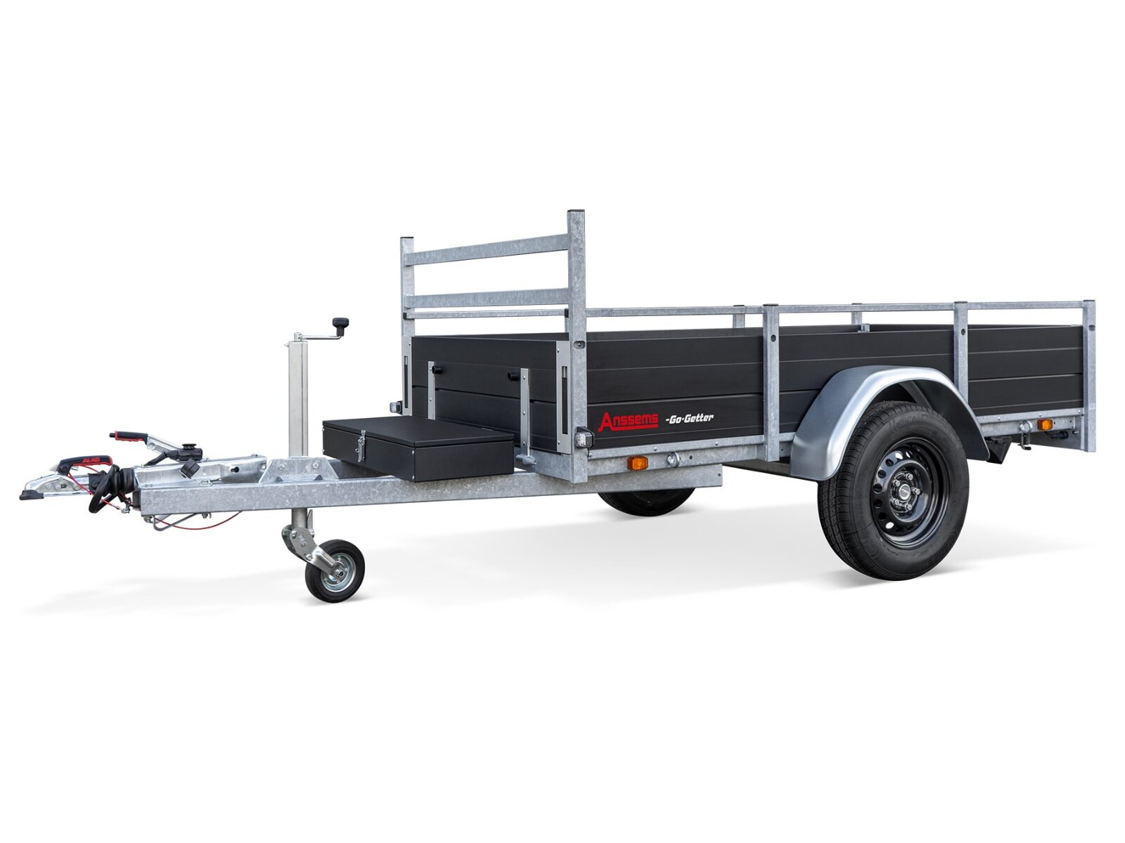 De Anssems BSX Go-Getter is een robuuste bakwagen aanhangwagen voor intensief gebruik, met een sterk gegalvaniseerd chassis en stabiele wegligging. De luxe zwarte afwerking, LED verlichting en handige toolbox maken hem compleet en onderscheidend.